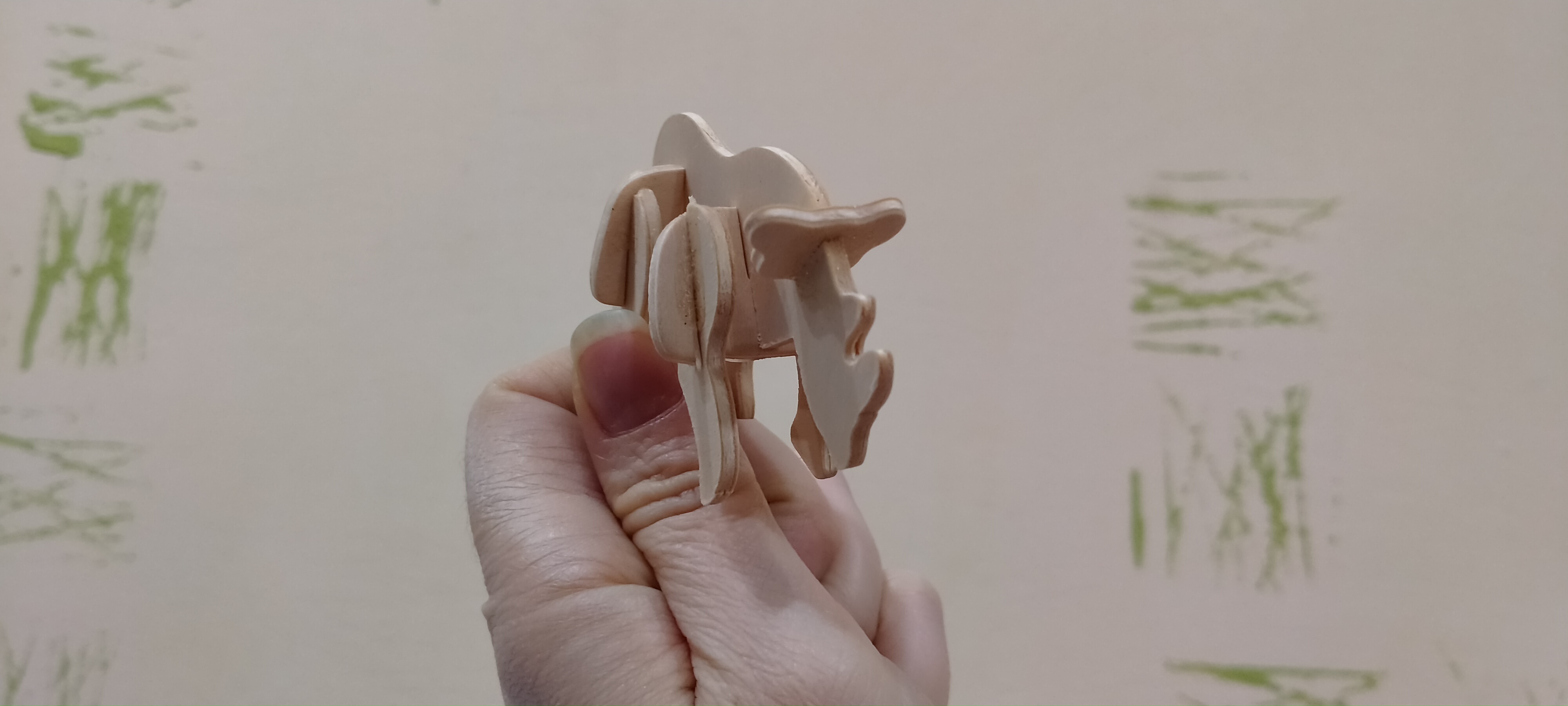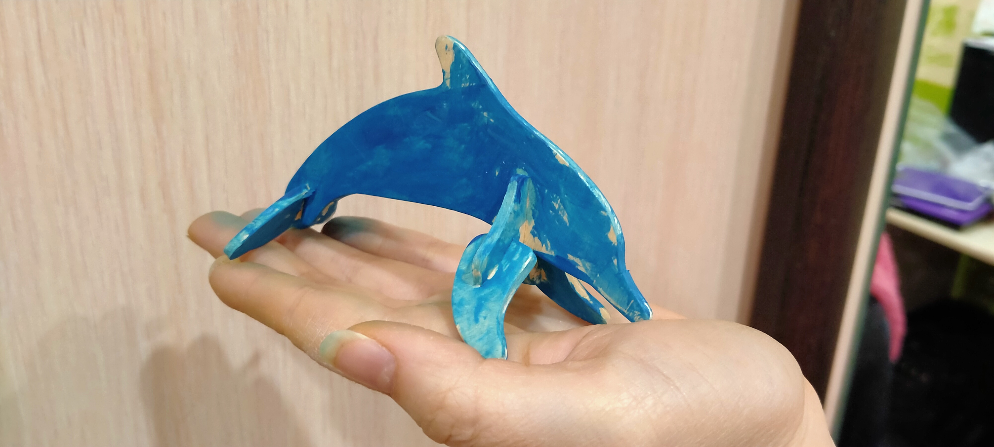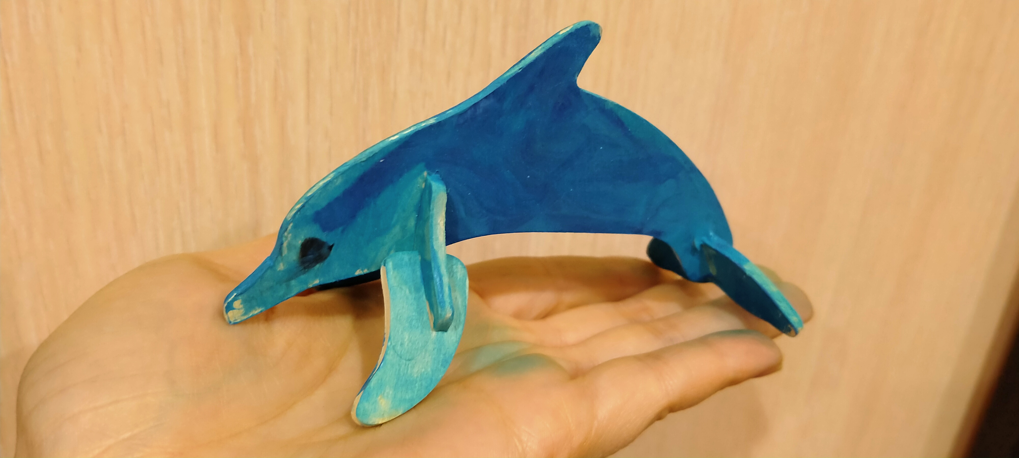 Сборка очень проста. Раскладываем на столе элементы, сопоставляем части и стыкуем их между собой, ориентируясь на образец. Благодаря несложным манипуляциям мы получаем желаемый объект. Так как он не окрашен, то ребёнку предоставляется возможность проявить фантазию и воспользоваться красками на водной основе (гуашь, акрил) для придания фигурке нужного цвета. После покраски игрушку можно покрыть лаком.