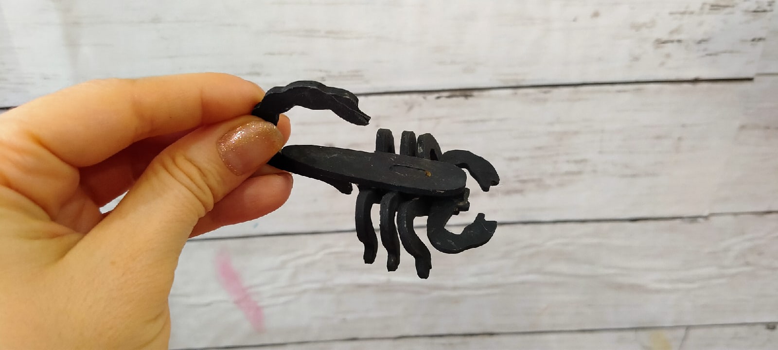 Уже когда клей полностью высохнет, мы стали раскрашивать нашего скорпиона. Красили мы черной гуашевой краской.