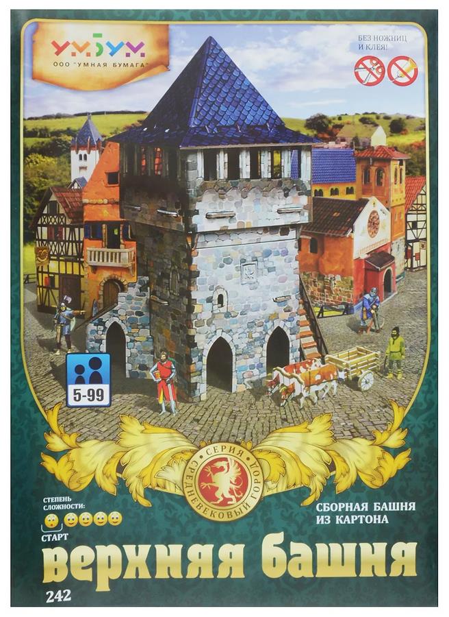 Сборная действующая игрушка из плотного картона в ассортименте: Дом купца (21 дет.), Городская школа (14 дет.), Конюшня (18 дет.), Кузница (23 дет.), Корепостная стена (24 дет.), Ткацкая мастерская (19 дет.), Водяная мельница и водяная мельница зима (29 дет.), Дом у стены (15 дет.), Угловая башня (18 дет.), Круглая башня (20 дет.), Старые ворота (15 дет.), Таверна (13 дет.), Верхняя башня (23 дет.).
