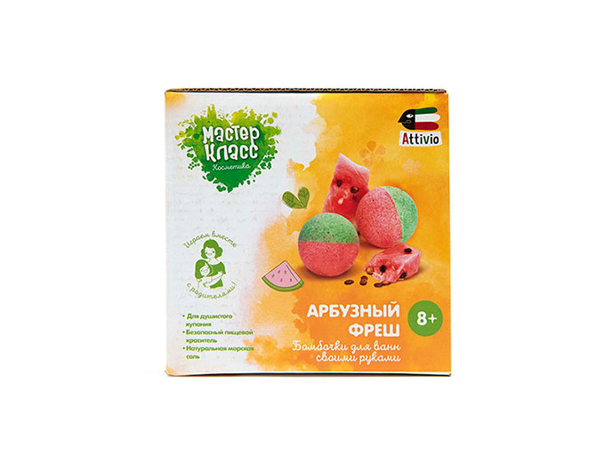 Игровой набор для творчества - бомбочки для ванн своими руками «Арбузный фреш», серия «Юный парфюмер» предназначен для создания бомбочек для ванн. Это развивающий и познавательный набор для детского творчества, и проведения эксперимента, без механизмов. Готовыми бомбочками можно пользоваться для приема расслабляющих ванн. Из этого набора у вас получится 4 штуки, диаметром по 4,5 см.