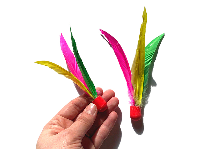 Есть еще два варианта игры вдвоем. Например, кто больше отобьет воланчик одной ракеткой на одном месте, не потеряв его. Или можно устроить соревнования кто дальше отобьет воланчик ракеткой.