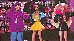 На смену утончённости и романтичности 70-х пришел конформизм 80-х годов: среди мужчин популярен культ тела, а в одежде впервые появляется направление powerdressing – стиль, когда одежда подчёркивает высокий социальный статус человека. Теперь у главного мужчины Barbie® упор идёт на красивое, сильное и атлетичное тело. Главным героем времени становится Мел Гибсон в образе Безумного Макса.