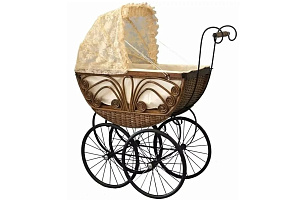 1 место - Коляска для куклы 50-60 см. Удобна для игры детей от 4-х лет. Винтажная (плетёная)