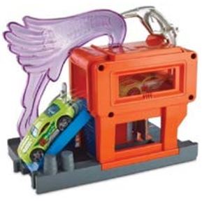 Hot Wheels® Cити игровой набор «Центральная заправочная станция». Любой ребёнок знает, что заправочная станция необходима для того, чтобы автомобиль не заглох посреди дороги. На заправочной станции установлено особое пусковое устройство: чтобы привести его в действие, нужно поместить машинку на второй этаж, а затем нажать на заправочный пистолет.