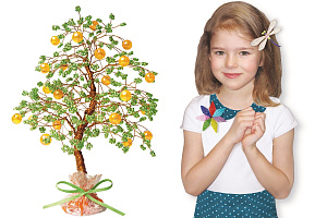 Ребенок дошкольного возраста вряд ли сможет долго и усидчиво плести сложную фигурку, но 6–7-летняя рукодельница вполне может набирать на кусочек проволоки по пять бисерин и скручивать веточку, помогая маме создать чудесное бисерное дерево. Мелкая моторика, тонкие движения пальчиков и аккуратность развиваются при этом отлично! А если возиться с блестящими цветными бусинками понравится, то уже начиная с восьми лет, многие дети справятся с простыми украшениями и фигурками самостоятельно.