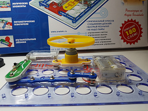 В купленный нами набор для начинающих входит больше 30 деталей, из которых можно создать 180 различных схем. Тут есть блоки, сенсорная пластина, геркон, кнопочные выключатели, лампа, динамик, электромотор и провода с соединительными клеммами. Поначалу, ребёнку было трудно понять суть процесса и его цель. Но спустя пару дней, он самостоятельно ловко справлялся даже с самыми трудными схемами. Инструкция очень подробная и понятная, содержит не только схемы, но и руководство по сборке. В схемах можно использовать ручное, магнитное, сенсорное, звуковое и даже водяное управление. А освоив несколько десятков схем, ребёнок сможет создавать свои собственные!