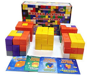 Замечательно то, что из элементов каждого набора можно сложить куб 3х3х3 и много тысяч красивых фигур. Игры интересны ребёнку тем, что он неожиданно для себя создаёт конструкцию, автором которой и является. Из элементов разной конфигурации можно составлять модели, как на плоскости, так и в объёме. Развивающие игры – вовсе не эликсир талантливости, но мощный стимул развития сообразительности и изобретательности. «Кубики для всех» доставят вам приятные минуты совместного общения, сделают условия развития ребёнка богаче и разнообразнее.