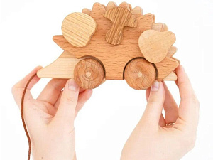 Милый ёжик сделан из трёх пород дерева, пропитан льняным маслом. В фрукты и ёжика вставлены разнополюсовые магниты, что позволяет прикреплять фрукты к любому бочку ёжика, и они не будут отталкиваться. В наборе по два одинаковых фрукта, что даёт возможность выстраивать логические ряды, находить одинаковые элементы. Ёжик поставлен на колеса, которые свободно крутятся. К носу привязана верёвочка. Это даёт дополнительные возможности для игр.Материал: липа, бук, клён, дуб, ясень, термобук, льняное масло.