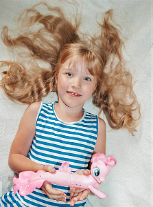 Моя дочка Ксения, которой сейчас 6 лет, на вопрос: «Какая твоя любимая игрушка?» принесла мне Пони-русалочку. После просмотра мультфильмов, она действительно очень полюбила всё, что связанно как с пони, так и с русалочкой. А тут производители игрушек, на радость дочке сотворили супер-гибрид!