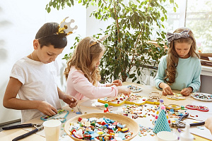 Есть наборы, которые можно предложить самым маленьким творческим натурам. Дети от 3-х лет (под присмотром взрослых, в наборах ведь мелкие детали) справятся с простым рукоделием, таким, как аппликациями из пуговиц, термо- и аквамозаики, имеющие относительно крупные бусины, размером 1 см.
