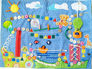 Кроме основной функции, с помощью коврика можно изучить (повторять) цвета и формы, познакомиться с понятиями большой-маленький, длинный-короткий, впереди-позади и так далее. Можно найти одинаковые пуговицы, пересчитать фигуры.