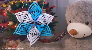Ещё один вариант досуга - большая объёмная снежинка из бумаги. По желанию её можно сделать и меньшего размера.