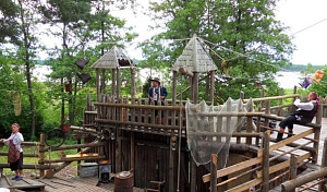 Ну, перекусили – продолжаем! Ещё нужно будет пройти от начала до конца по затонувшим мачтам, не свалившись при этом. Отыскать следы зайца! Не менее захватывающие задания ждут уже в финале: здесь и стрельба из лука, и скалолазание с профессиональным оборудованием и инструкторами. Все задания пройдены успешно, вот и пристань виднеется. Как быстро пролетело время! Уезжать не хочется. Кстати, если остаются силы, то никто не запрещает обежать остров ещё раз! Уже знаешь: что и где, не заглядываешь в брошюру и чувствуешь себя мастером, а не новичком!