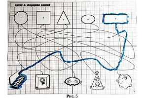 Очень часто самыми любимыми для детей становятся приложения-игры с гласными и согласными буквами (рис. 4)! Ребята с большим удовольствием находят дорогу в лабиринтах и собирают бусинки-буквы, составляя из них слова. Интересными и занимательными можно сделать занятия с «Игровизором» для детей и старшего дошкольного, и младшего школьного возраста, используя, например, графические диктанты, игру в «Морской бой» (рис. 3).