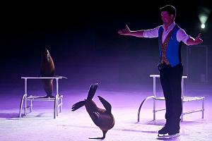 На протяжении представления сцена Цирка Танцующих Фонтанов «Аквамарин», как волшебный магический кристалл, демонстрирует грани своих возможностей. А возможности эти отнюдь не ограничиваются яркой феерией фонтанов и огромным водным экраном, на котором оживают объёмные картины. За считанные секунды сцена превращается в обжигающий холодом лёд. Он радужно искрится под лезвиями коньков артистов ледового балета, которые виртуозно исполняют сложнейшие танцевальные па.