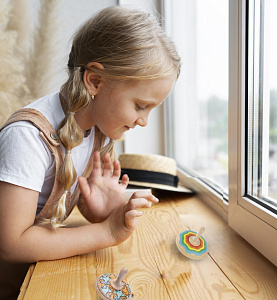 Вот некоторые варианты игры с волчком: чей волчок дольше прокрутится; кто сможет дальше прошагать, неся на ракетке вращающийся волчок. Можно играть самостоятельно или парами, какая пара должна передать друг другу ракетку, чтобы при этом не уронить вращающийся волчок. Кто сможет подбросить и поймать на ракетку вращающийся волчок, не уронив игрушку. Чей волчок собьёт больше предметов, заранее приготовленных на игровом поле или, напротив, обойдёт препятствия; чей волчок сможет пройти в «ворота», не сбив их.Для игр с волчком можно придумать свои правила. Волчок для детей – возможность весело развивать мелкую моторику, координацию движений. Игры способствуют развитию ловкости. Запускаем, вращаем, играем!