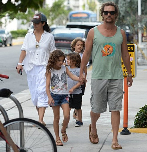 Родители троих детей, 47-летний Мэттью МакКонахи и его жена, 35-летняя модель Камилла Алвес, определённо знают секрет идеального брака. Супруги нередко выбираются отдохнуть без детей, чтобы провести время наедине друг с другом, а когда возвращаются -– посвящают сыновьям и дочери максимум внимания. Недавно звёздные супруги вернулись из Бразилии, где они праздновали свадьбу друга МакКонахи - менеджера Гая Озери. И первые выходные дома Мэттью и Камилла провели с детьми, гуляя по Майами. Папарацци удалось заснять семью в полном составе, что довольно необычно. Ведь МакКонахи, в отличие от многих других звёзд, скрывает семью от посторонних глаз.