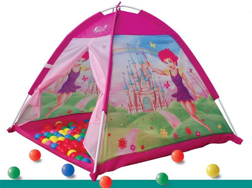В комплекте с палаткой есть 100 шариков, размер палатки в собранном виде 112х112х94 см.