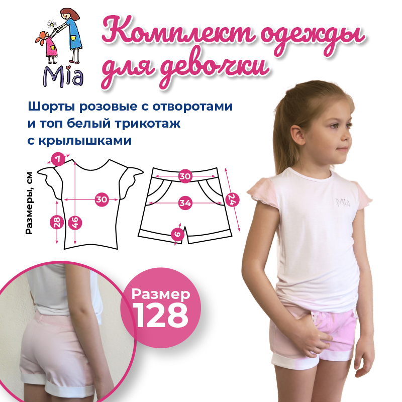 Комплект одежды Mia для девочки: топ с крылышками и шорты с отворотами