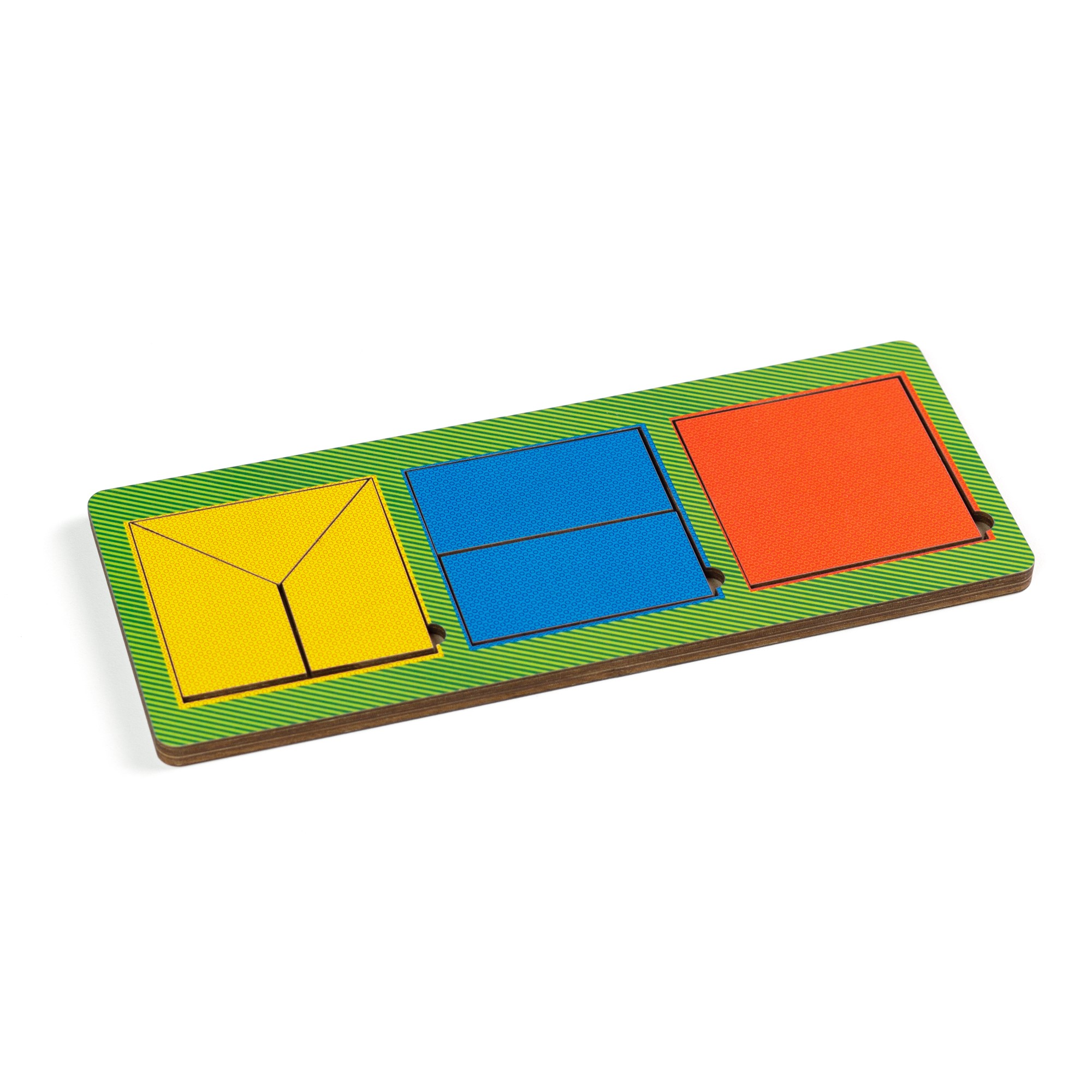2. Развивается мелкая моторика. Вставляя определенным образом части квадрата, ребенок прекрасно тренирует пальчики.